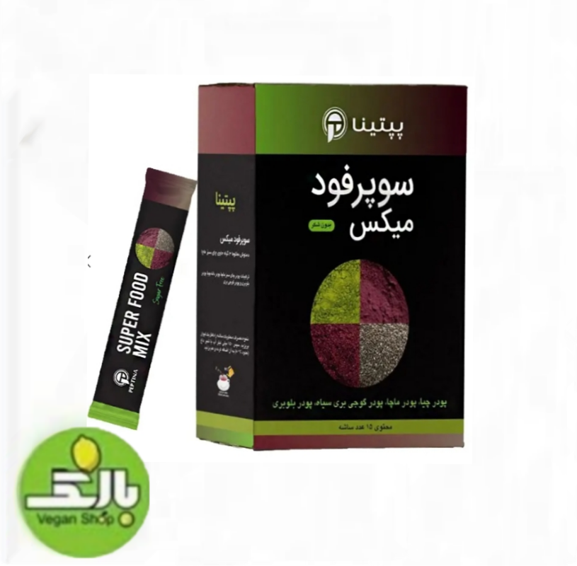 سوپر فود میکس پپتینا ترکیبی از پودرهای ماچا ، بلوبری ، گوجیبری سیاه و دانه چیا است که میتواند به کاهش وزن ، تقویت پوست و مو ، کاهش فشار خون و متعادل کردن قند خون و محافظت از کبد کمک کند. این مکمل سرشار از انواع ویتامین ، مواد معدنی ، آنتی اکسیدان ، بیوفلاونید و آنزیمهای مفید برای بدن است بطوریکه مصرف روزانه این موادغذایی در برنامه رژیم غذایی همه ضروری است.