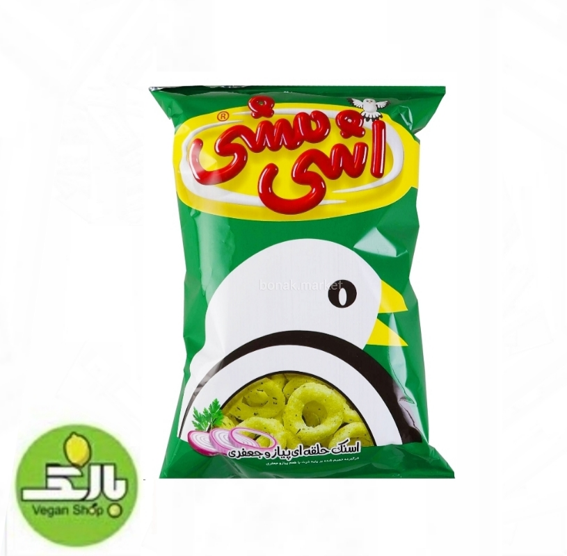 فرآورده حجیم شده بر پایه ذرت با طعم پیاز جعفری . ترکیبات : بلغور ذرت ، روغن نباتی ، پودر پیاز و جعفری .